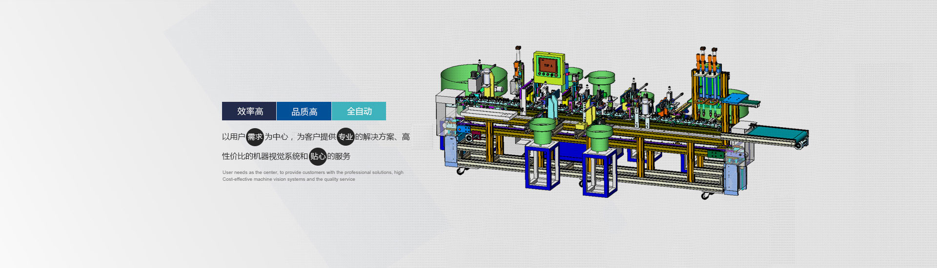 以用戶需求為中心,為客戶提供專業的解決方案、高性價比的機器視覺系統和貼心的服務,全自動組裝檢測,產品自動組裝,偵測,檢測,包裝自動完成,實現無人車間,提高生產效率與產品品質。